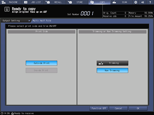 Touch panel - [COPY] - [Output Setting] - [Multi Half]