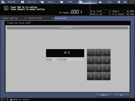 Screen access | Touch panel - [COPY] - [Output Setting] - [Perfect Bind] | ||