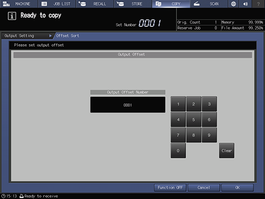 Touch panel - [COPY] - [Output Setting] - [Offset Sort]