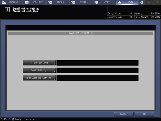 Touch panel - [SCAN] - [E-mail] - [Option Setting]