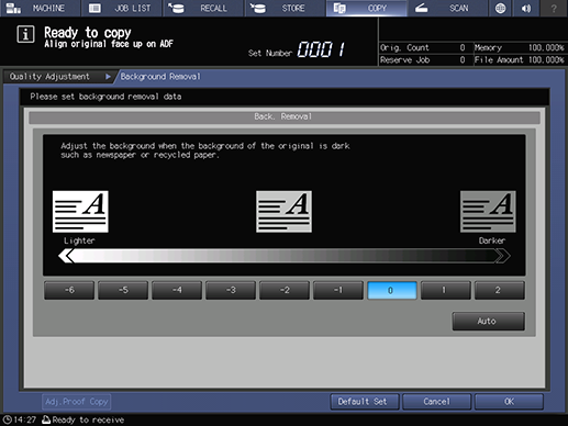 Touch panel - [COPY] - [Quality Adj.] - [Back. Removal]