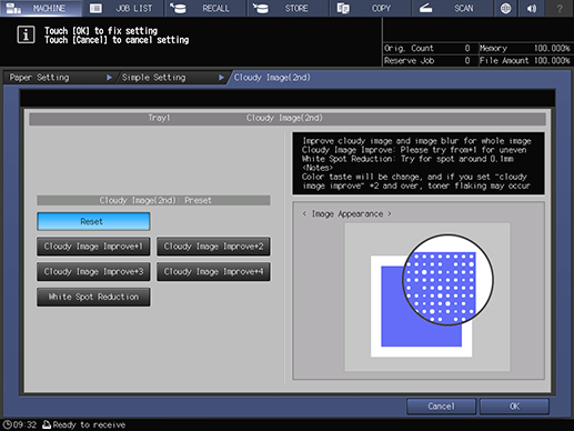 Touch panel - [MACHINE] - [Paper Setting] - [Simple Setting] - [Cloudy Image(2nd)]