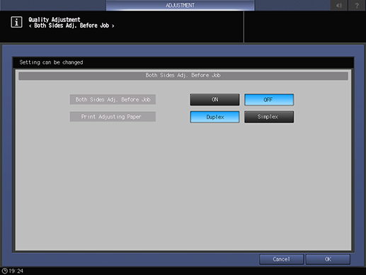 Touch panel - [MACHINE] - [Adjustment] - [Quality Adjustment] - [Both Sides Adj. Before Job]