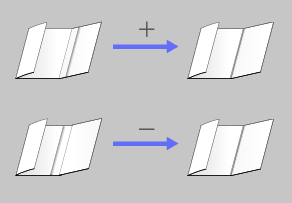 Remarks | The tri-fold position may be drawn near the crease position depending on the [Crease] position, resulting in a change of the fold position. In this case, determine the fold position in [Tri-Fold Position Adj.], and follow the steps below to adjust the crease position. 1. Shift the crease greatly in regard to the tri-fold position. Shift the crease in the minus (-) direction or plus (+) direction so that each current position is misaligned at a maximum before printing out. 2. Check the output paper, and measure the distance between the crease of the output paper and the desired position. 3. Enter the distance measured above in the setting value of [Tri-Fold Crease Position]. | ||
