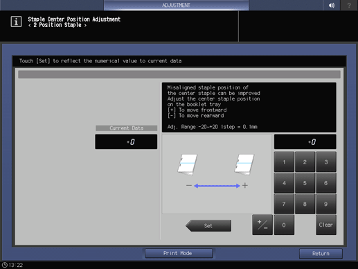 Setting items | [Current Data] | Displays the adjustment value of the staple center position. | |