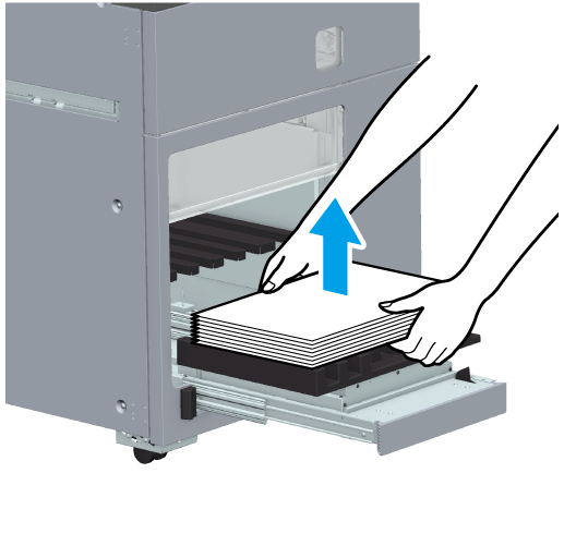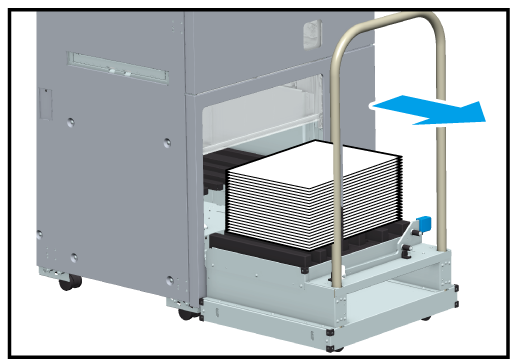 The Output Paper Gate opens, and the receiver of the Output Tray comes out from inside the stacker.