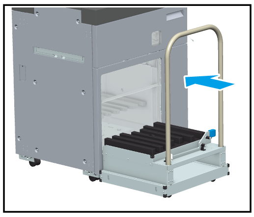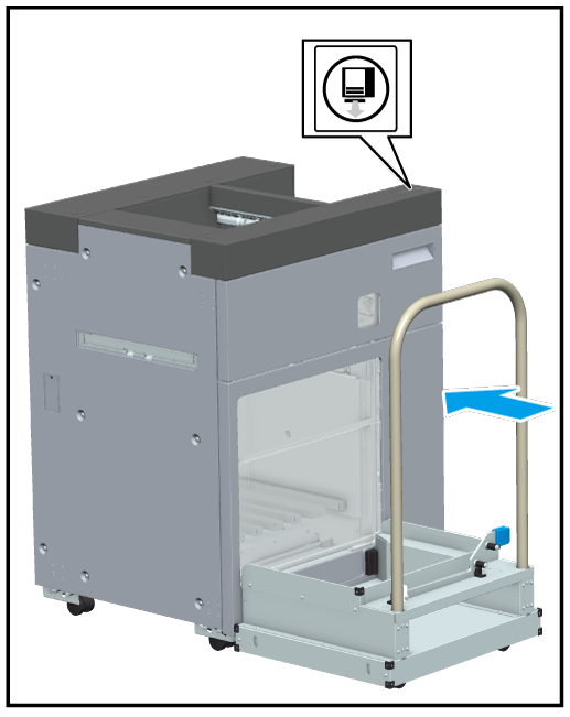 When the Output Tray is placed in the receiver, the Output Tray and the receiver are automatically housed in the stacker.