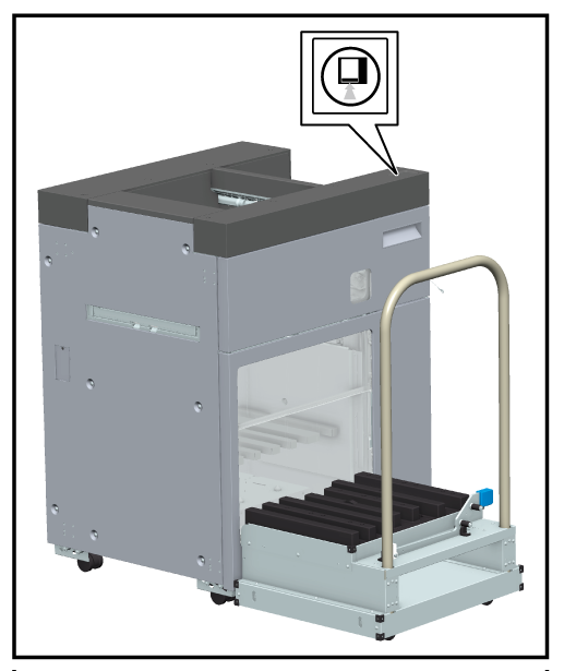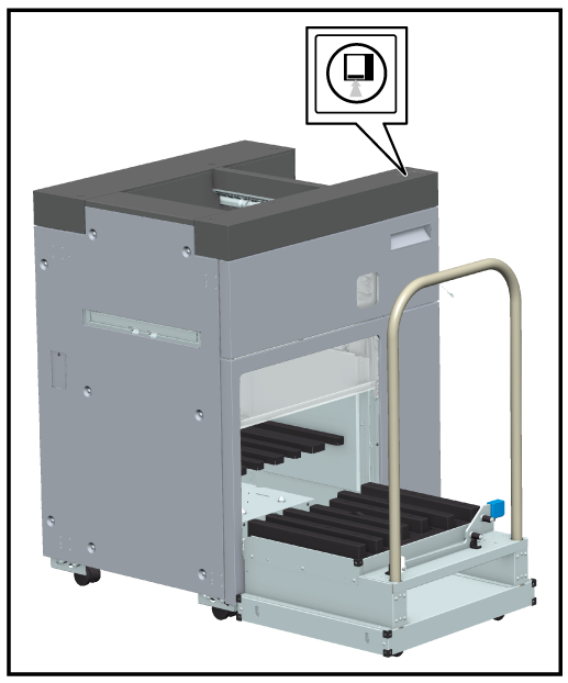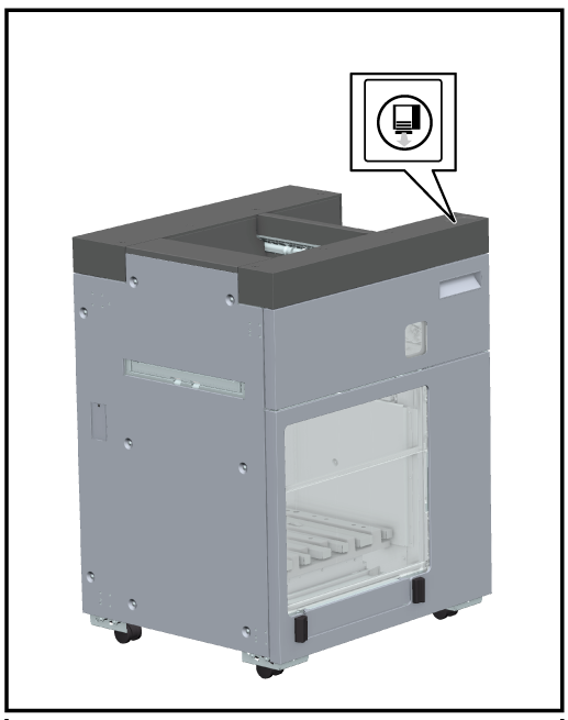 The Large Capacity Stacker is 1 of the optional devices that is used in this system. If the Large Capacity Stacker is mounted on this system, a large quantity of unsorted or sorted paper can be stacked.
