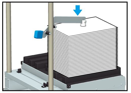 Operate the Control panel of the Large Capacity Stacker LS-507 to remove paper stacked in the Stacker tray. Using the Carriage allows paper to be smoothly delivered to the next process.