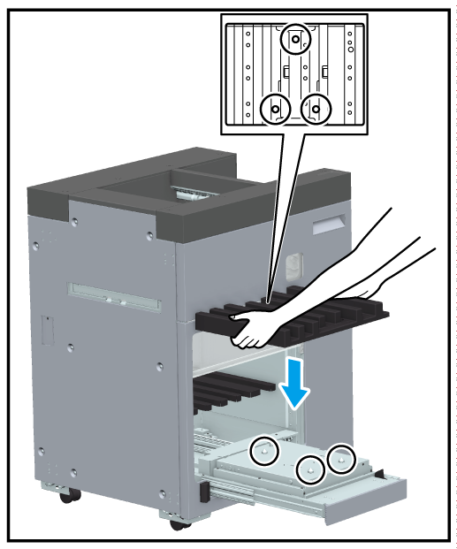 When placing the Output Tray, align the 3 holes of the Output Tray with the projections of the receiver.