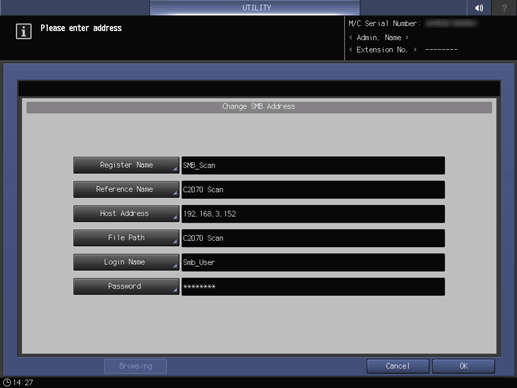 Control panel - Utility/Counter - [Scan Address Register] - [Address Edit] - [SMB] - [Change]