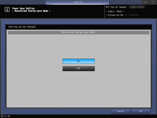Control panel - Utility/Counter - [Administrator Setting] - [System Setting] - [Power Save Setting] - [Mono Energy-save Mode]