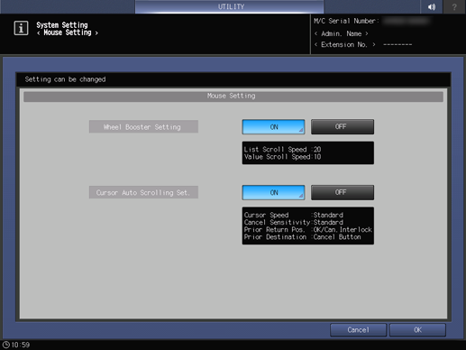 Screen access | Control panel - Utility/Counter - [User Setting] - [System Setting] - [Mouse Setting] | |||