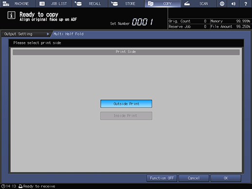 Touch panel - [COPY] - [Output Setting] - [Multi Half]