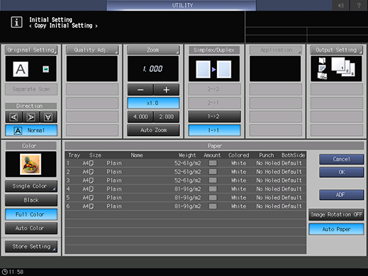 Control panel - Utility/Counter - [User Setting] - [Initial Setting] - [Copy Initial Setting]