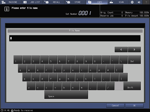 [File Name] | Enter [File Name]. The file name can be entered using up to 63 double-byte or 127 single-byte characters. The same name can be specified as necessary. For details, refer to [Store Setting]. | ||