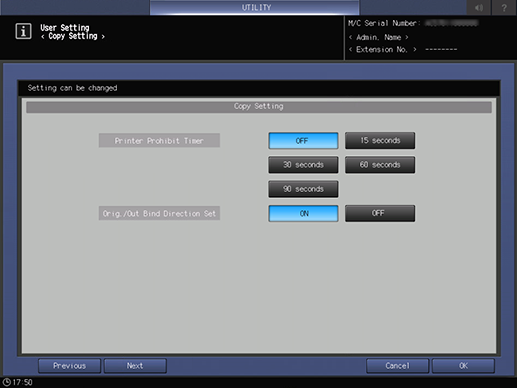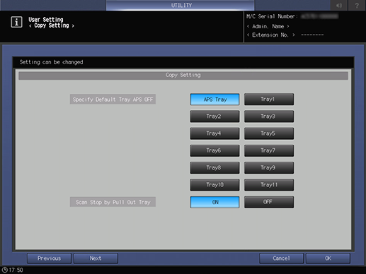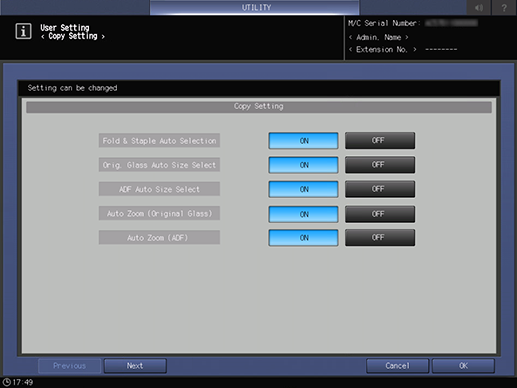 Control panel - Utility/Counter - [User Setting] - [Copy Setting]