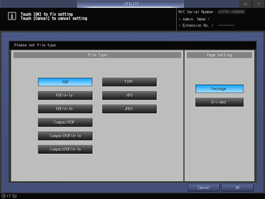 Control panel - Utility/Counter - [Administrator Setting] - [Scan Setting] - [Scan Address Default Setting] - [File Type Default FTP]