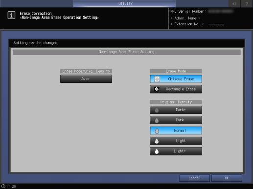[Original Density] | [Dark+] | Selects [Original Density] from 5 stages, if [Oblique Erase] or [Rectangle Erase] are selected. | ||