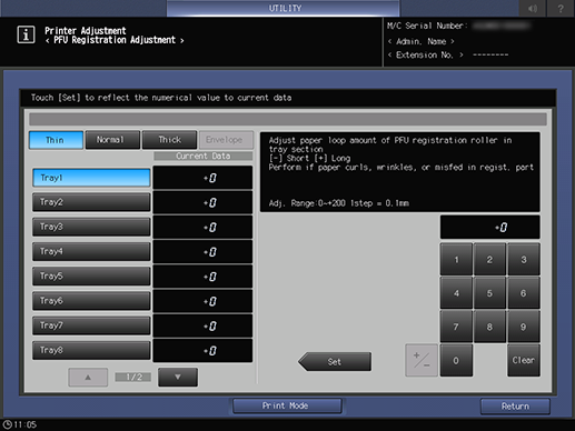 Screen access | Control panel - Utility/Counter - [Administrator Setting] - [System Setting] - [Expert Adjustment] - [Printer Adjustment] - [PFU Registration Adj.] | ||