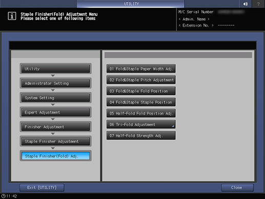Control panel - Utility/Counter - [Administrator Setting] - [System Setting] - [Expert Adjustment] - [Finisher Adjustment] - [Staple Finisher Adjustment] - [Staple Finisher(Fold) Adj.]