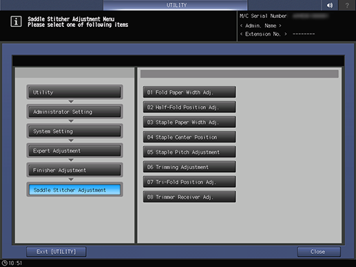 Control panel - Utility/Counter - [Administrator Setting] - [System Setting] - [Expert Adjustment] - [Finisher Adjustment] - [Saddle Stitcher Adjustment]