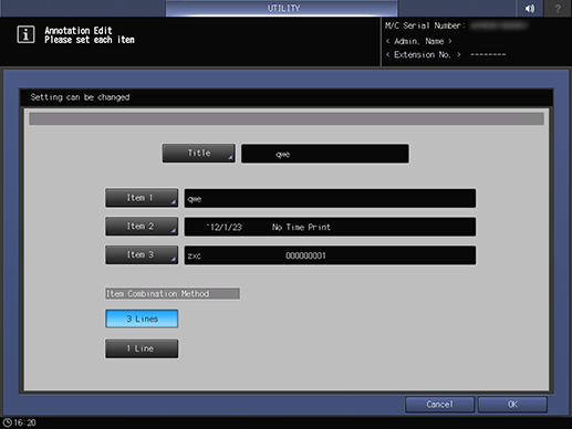 Control panel - Utility/Counter - [Administrator Setting] - [System Setting] - [Annotation Setting] - Registered optional stamp key - [Edit]