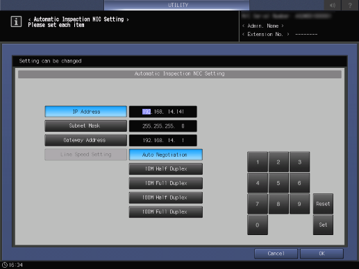 Control panel - Utility/Counter - [Administrator Setting] - [Network Setting] - [Auto Inspection NIC Setting]