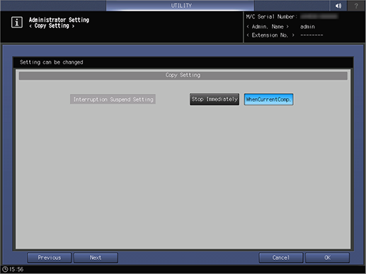 Control panel - Utility/Counter - [Administrator Setting] - [Copy Setting]