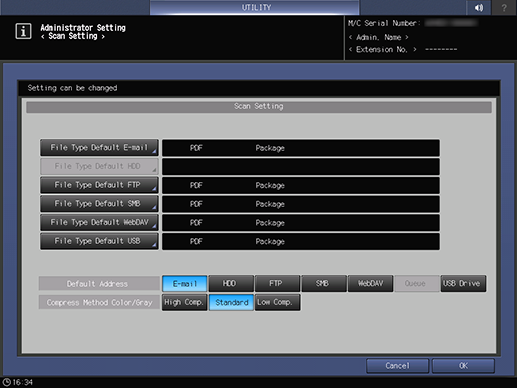 Control panel - Utility/Counter - [Administrator Setting] - [Scan Setting] - [Scan Address Default Setting]