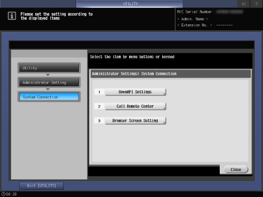 Control panel - Utility/Counter - [Administrator Setting] - [System Connection]