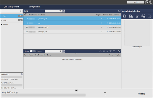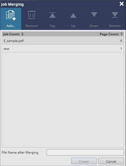 AccurioPro Print Manager - Select a job, and right-click. - [Merge...] | |||