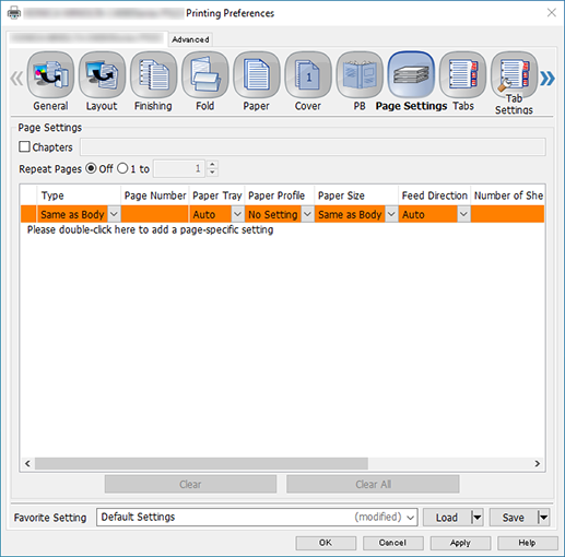 AccurioPro Print Manager - [Configuration] - [Hot Folder Configuration...] - Double-click a hot folder - [Page Settings] | ||||