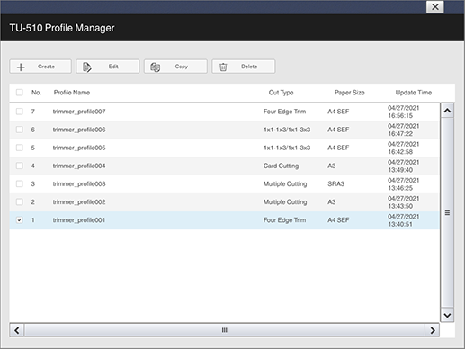 Web Utilities - [Finisher Manager] - [TU-510 Profile Manager]