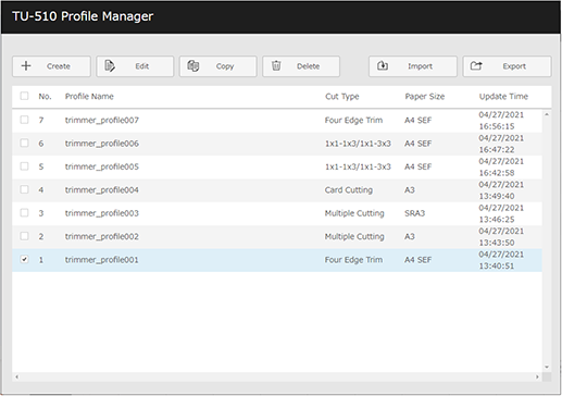 Web Utilities - [Finisher Manager] - [TU-510 Profile Manager] | |||