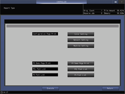 Touch panel - [MACHINE] - [Controller] - [Report Type]