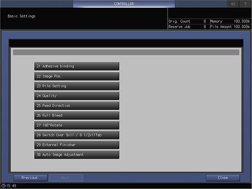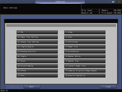 Touch panel - [MACHINE] - [Controller] - [Direct Print Setting] - [Basic Settings]