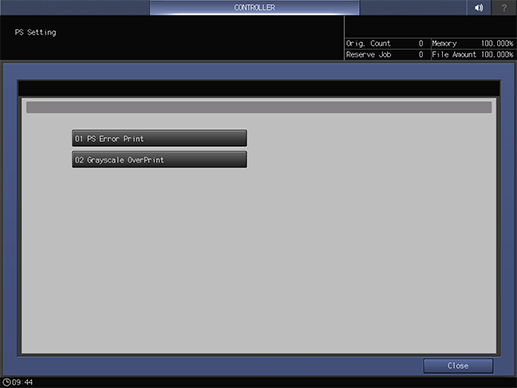 Touch panel - [MACHINE] - [Controller] - [Direct Print Setting] - [PS Setting]