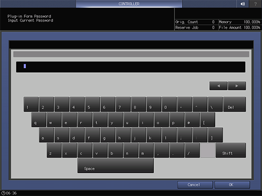 Touch panel - [MACHINE] - [Controller] - [Plug-in Form Password]