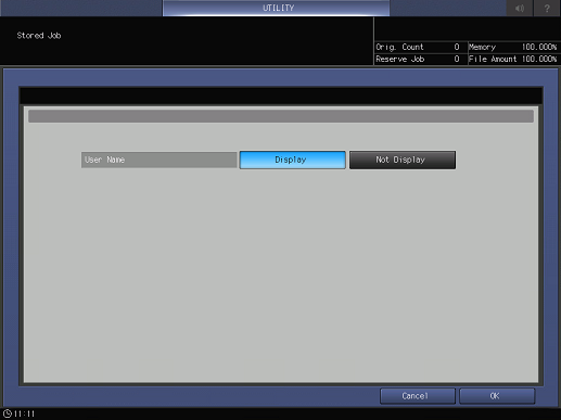 Setting items | [ON] | Enables the personal information protection setting of a store job. If [ON] is selected, set [User Name]. | ||