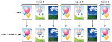 Example 1: If the repeat unit is set to 3 and 7 pages are specified, they are printed as shown below.