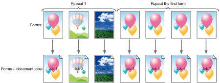 Example 2: If the repeat unit is set to 1 and 7 pages are specified, they are printed as shown below.