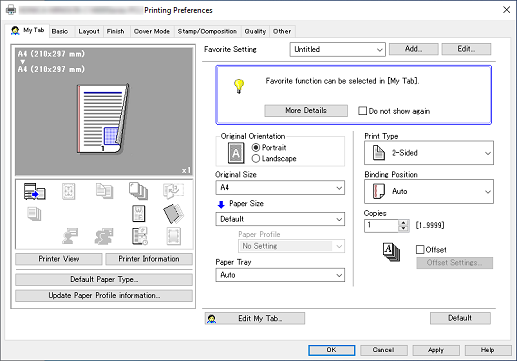 [My Tab] | Enables you to freely arrange various setting items in other tabs of this printer driver. |