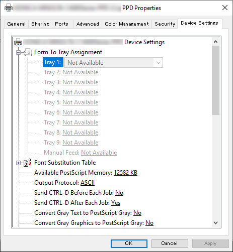 [Apply] | Applies the setting of PPD Driver. This item may not be displayed depending on the method used to start the driver. |