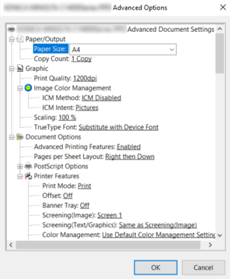 [PostScript Language Level] | 1 to 3 | Set a PostScript language level. To use more functions, increase the numeric value. |