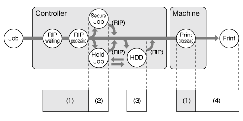 - You can edit and print the jobs stored on the Image Controller HDD. The print data can still be sent to the system and printed, even if the printer driver is not installed.