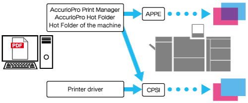 To print using AccurioPro Print Manager/machine hot folders/AccurioPro Hot Folder, select APPE on the system.