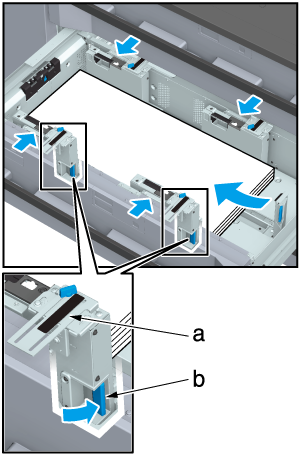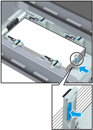 Hold down Side guide lock release lever of Side guides and Rear edge guide lock release lever of Rear guide plate and open out the guides.