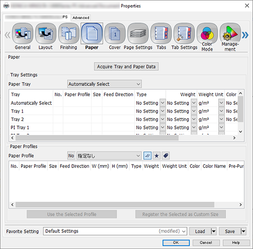 Select the [Paper] tab, and click [Acquire Tray and Paper Data].