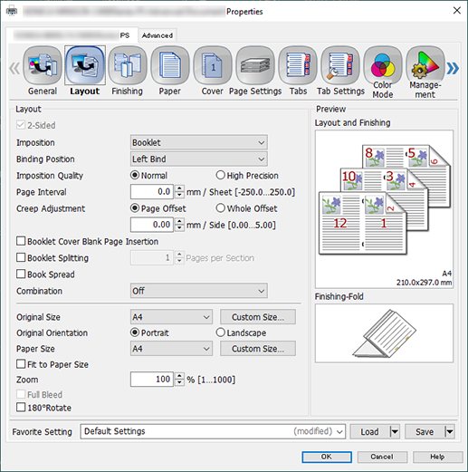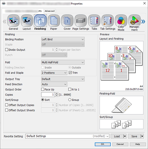 Select the [Finishing] tab, and configure the following items.
